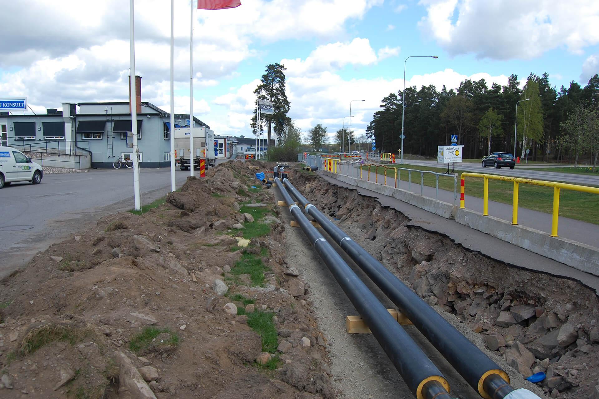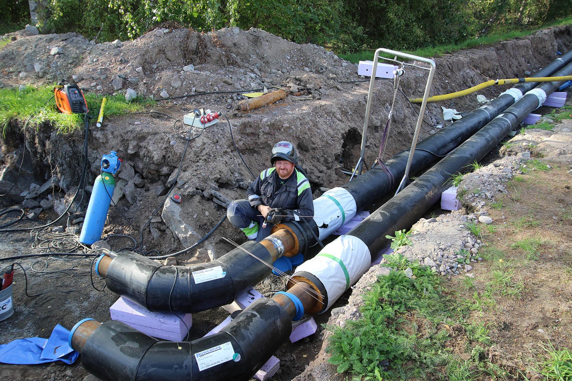 Värmen leds till kunderna via värmerör nedgrävda i marken.